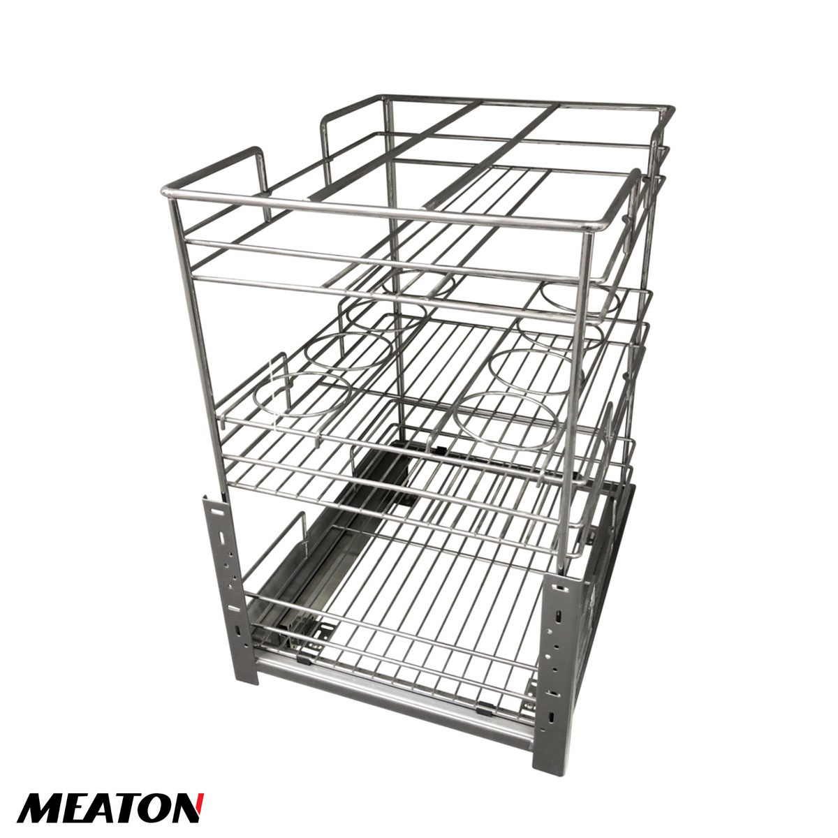 Instalación basal. 3 niveles. Medidas totales: 370x470x550 mm. Mínimo módulo recomendado: 400 mm. Palabras clave: cocina accesorios herrajes meaton organizadores despensas extraibles …