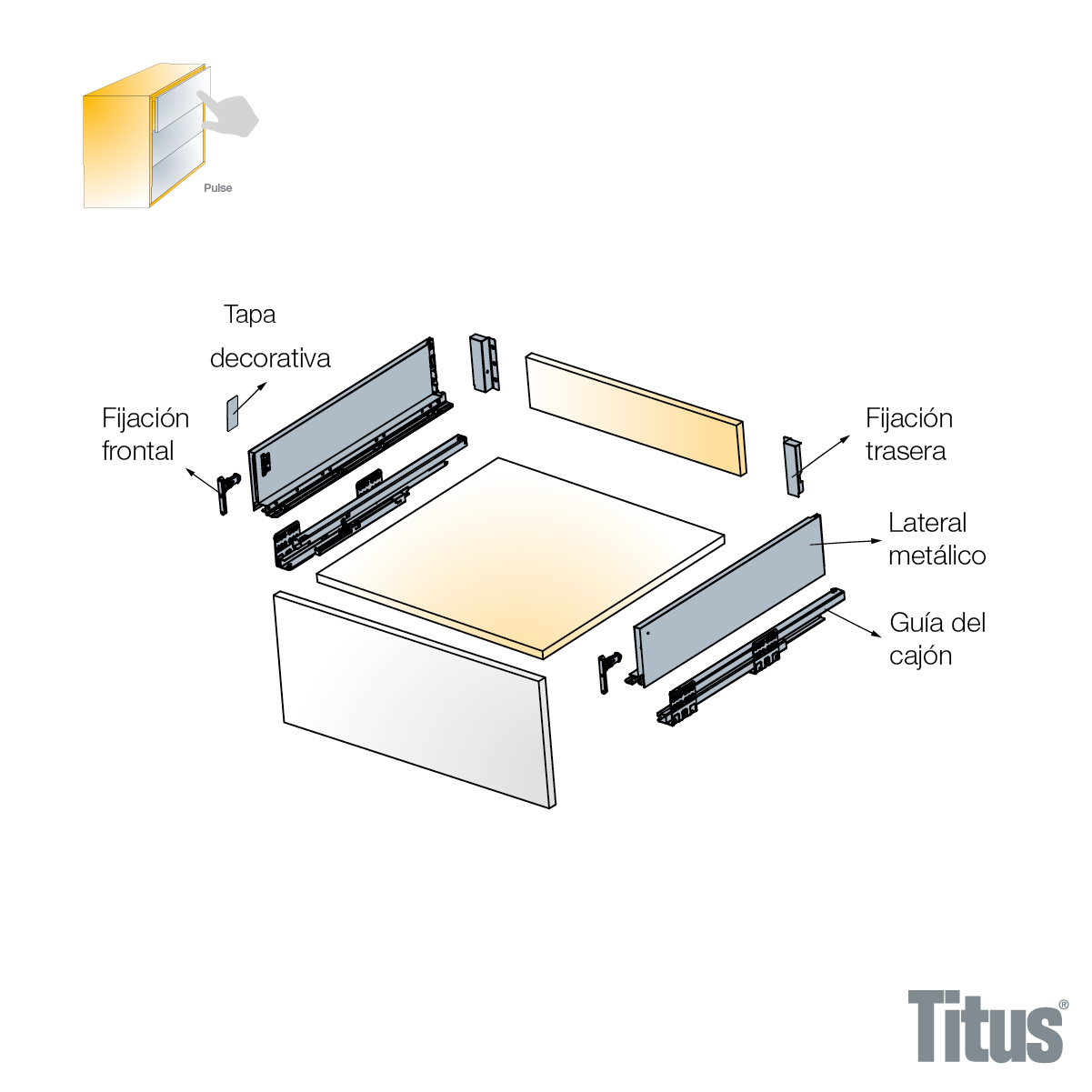 Espesor de lateral de 14 mm. proporciona mayor aprovechamiento de los espacios dentro del cajón.