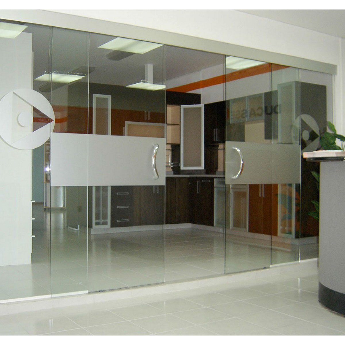 Un sólo movimiento abre ambas puertas en sentido opuesto y de forma sincronizada. Este sistema permite la apertura de zonas de paso, sin intervenir el piso. Cuenta con mordazas de sujeción a presión, permitiendo una fácil instalación. Posee tapas en mordazas para una buena terminación. Usar con vidrios templados. El rodamiento del carro es premium permitiendo un deslizamiento suave y silencioso.