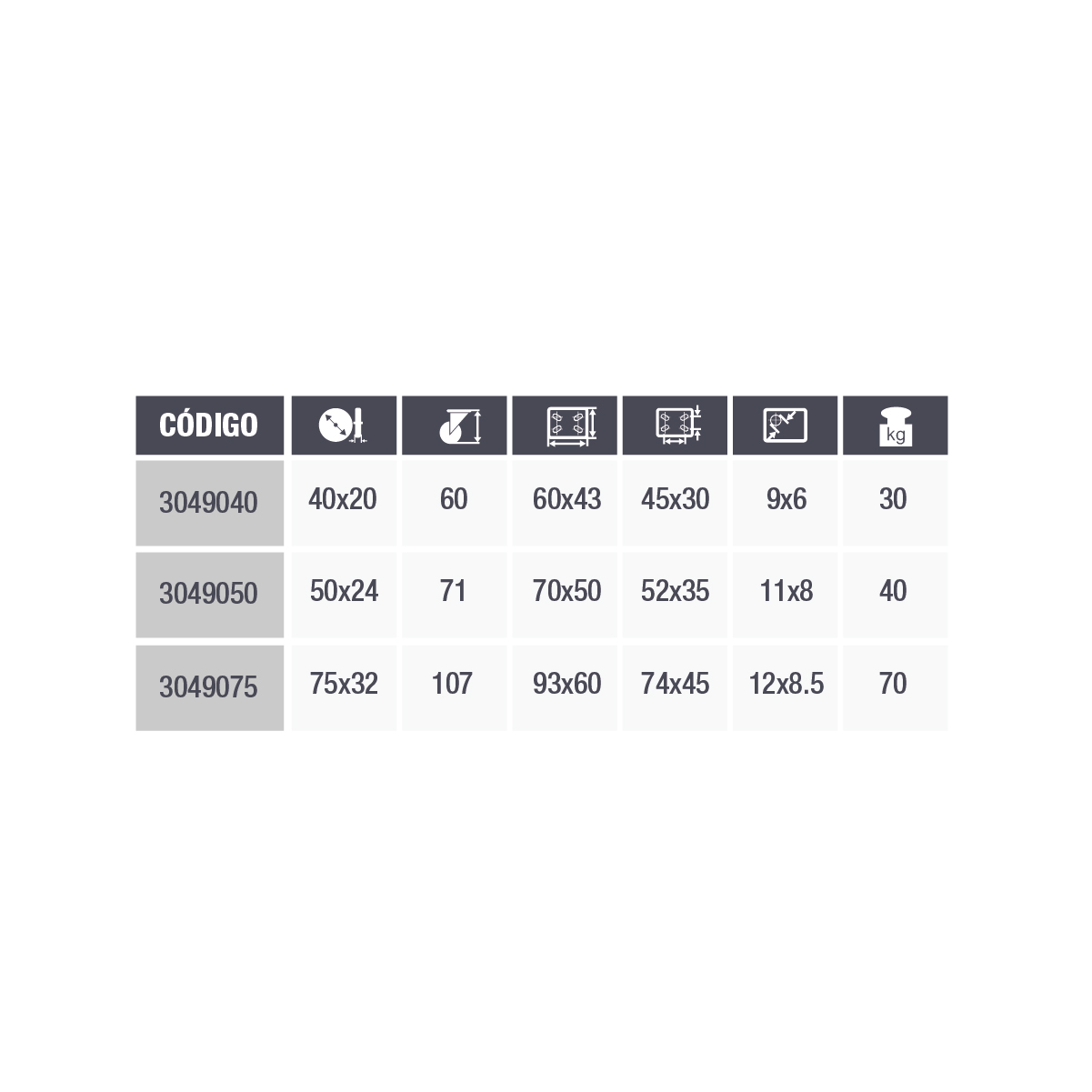 50 mm. de diámetro. 40 kg de capacidad de carga por unidad.