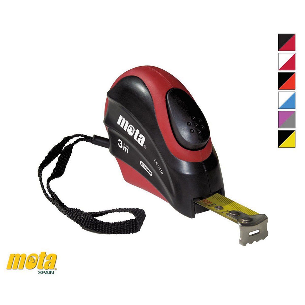 Caja ergonómica bi-inyectada en caucho y ABS, con clip para cinto. Fleje templado con pintura, barniz anticorrosión y laca protectora. Numeración correlatica. …